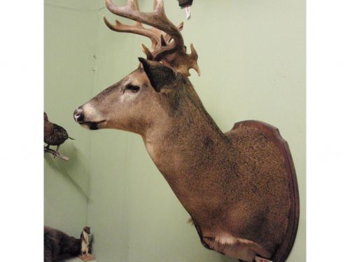 Täytetty kauriinpää. Oma trofee. Ensimmäinen kauriini. Ei sarvien tarvitse olla kamalan suuret jos on muuta tunnearvoa.